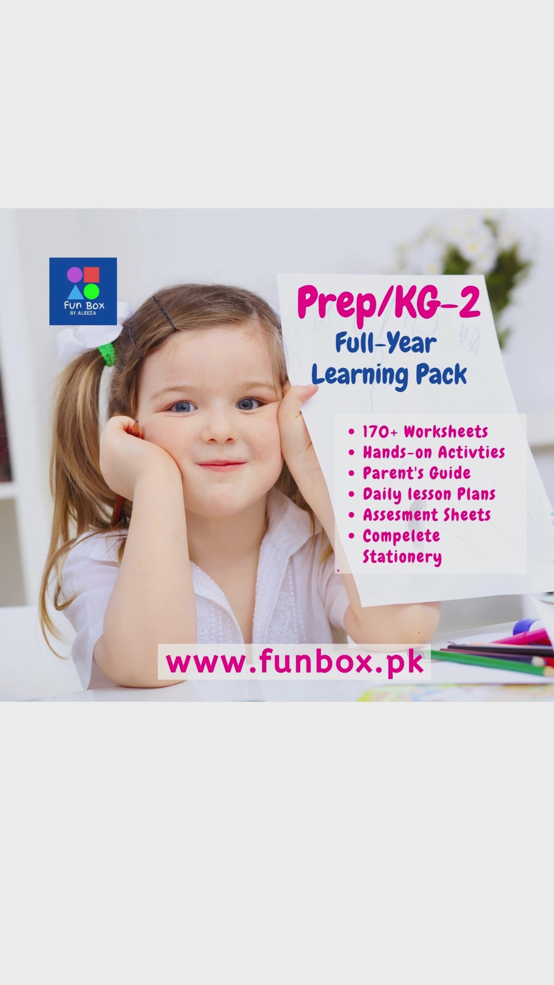 Our Prep/KG-2 learning pack is an exclusively designed product covers all learning areas of the Prep/KG-2's full year's curriculum and skill development including but not limited to: